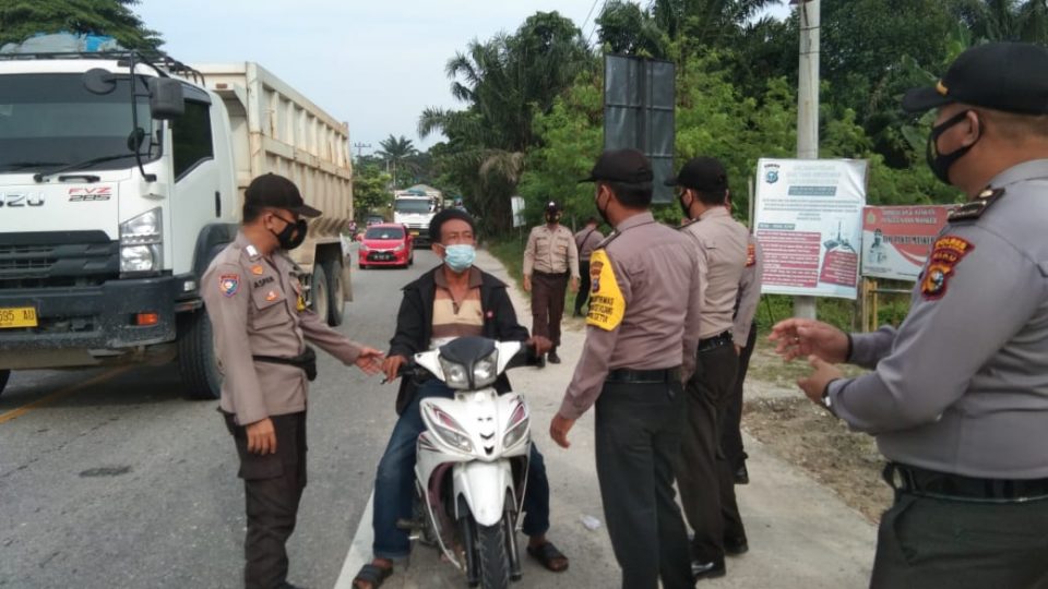 Pekanbarukini.com (PELALAWAN) – Dalam bentuk upaya mengamankan wilayah binaanya dari penyebaran Covid-19, Kepala Kepolisian Sektor (Kapolsek) Bandar Sei Kijang AKP Yusup Purba, kembali memimpin kegiatan operasi yustisi, Rabu (7/7/2021). Kali ini, kegiatan dilakukan di pos pantau Jalan Lintas Timur.