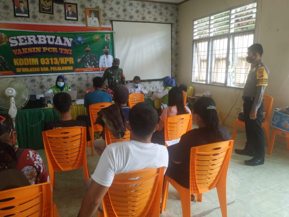 Pekanbarukini.com (PELALAWAN) – Bhabinkamtibmas Desa Pelalawan Polsubsektor Pelalawan Bripka Nofrizal bersama TNI melaksanakan monitoring dan pengamanan pelaksanaan kegiatan penyuntikan vaksin Covid-19.