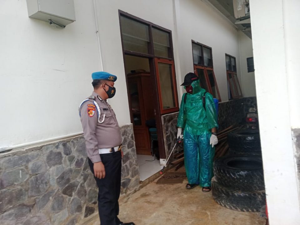 Selain di kantor, penyemprotan juga dilakukan ke asrama Polsek Pangkalan Lesung. Kegiatan ini di pimpin oleh Kapolsek Pangkalan Lesung Iptu Liston Sihombing.