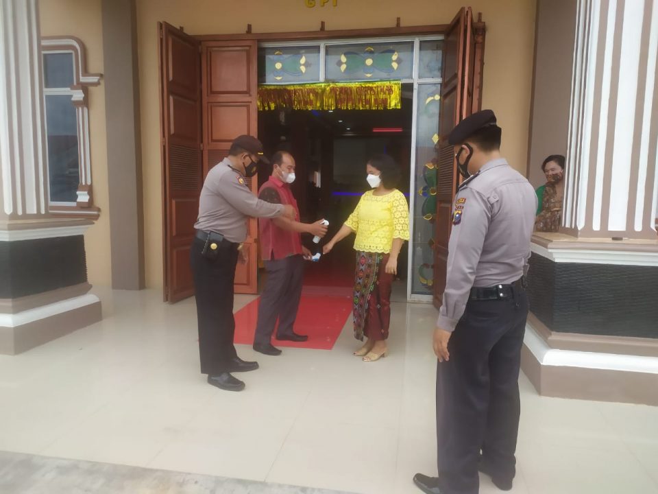 “Dalam giat petugas mengingatkan jemaat untuk tetap menerapkan Prokes dengan memakai masker, menjaga jarak dan mencuci tangan serta berwaspada dalam pengamanan kendaraan agar tidak pencurian motor,” kata AKP Mahendra Yudhi Lubis selaku Kapolsek Pangkalan Kerinci.