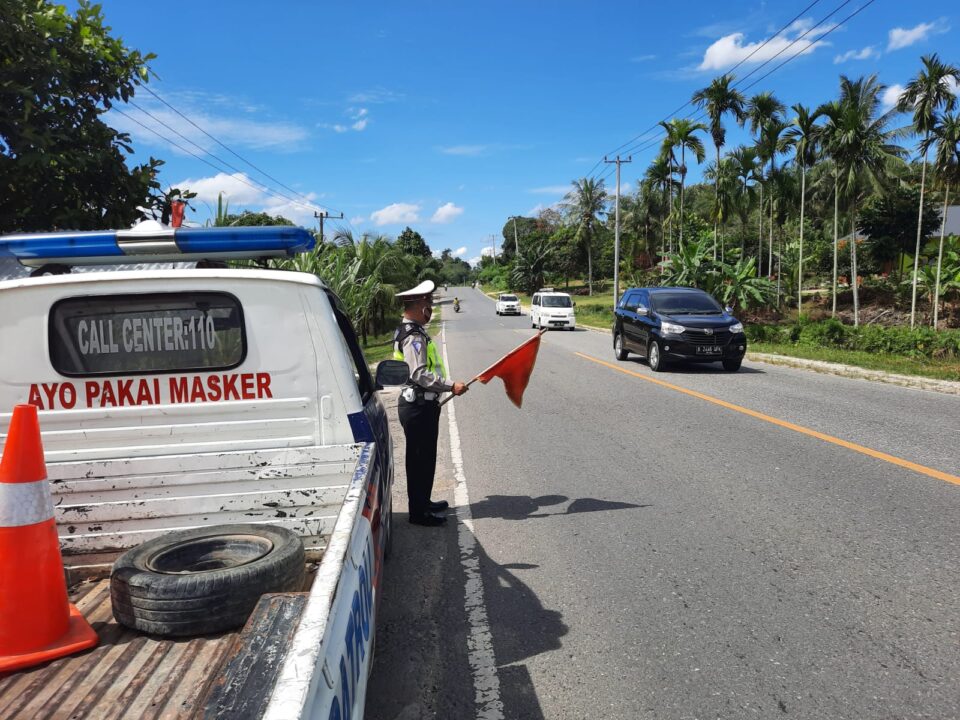 Pekanbarukini.com (PELALAWAN) – Unit Lantas Pangkalan Kuras, jajaran Polres Pelalawan menggelar patroli roda empat. Kegiatan dilakukan dalam rangka mengantisipasi kecelakaan lalu lintas (Laka Lantas), Senin (11/10/2021) siang.