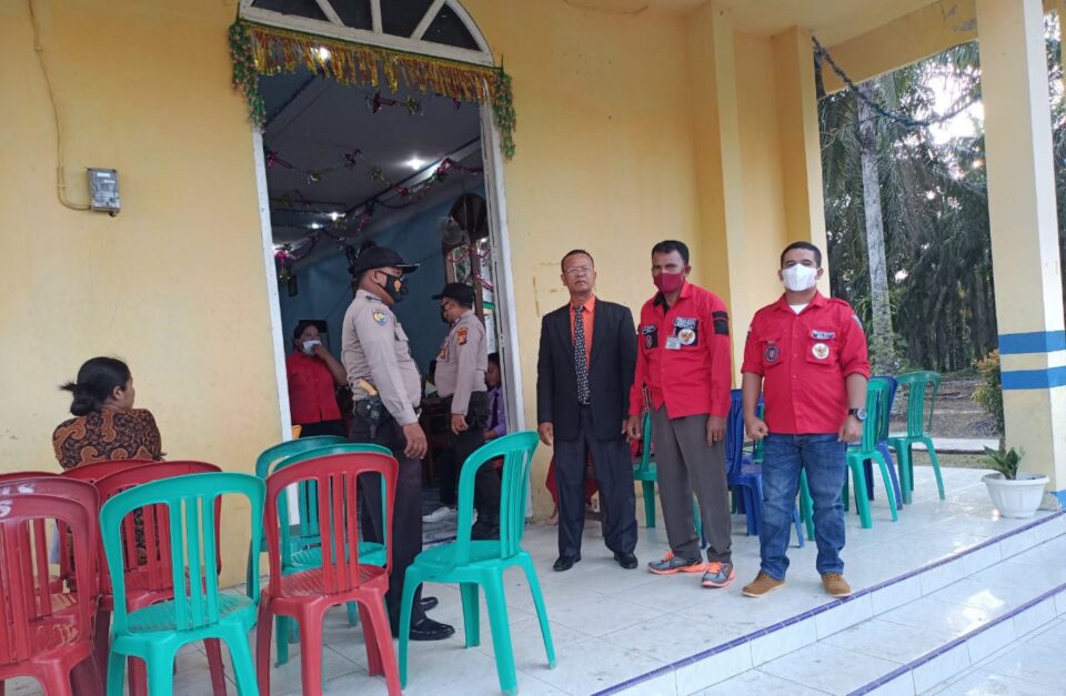 Pengamanan dilakukan digereja HKBP Beteshda Sp 1 Desa Bukit Lembah Subur Kecamatan Kerumutan, Kabupaten Pelalawan. Penanggung jawab kegiatan Pendeta ST. Morgan Silaban, Sabtu (25/12/2021).