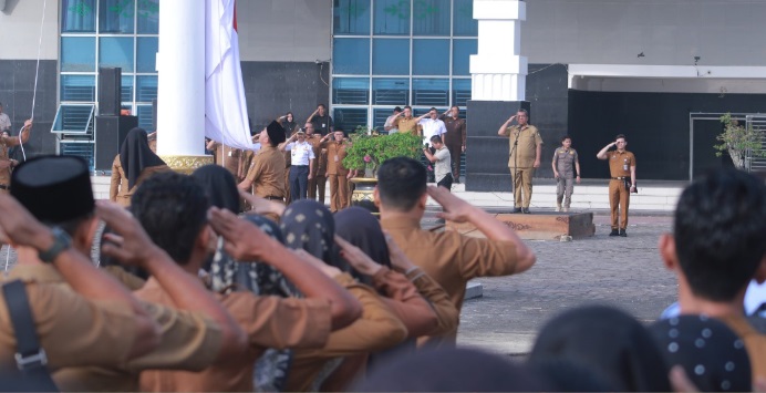 PEKANBARU – Penjabat Walikota Pekanbaru, Roni Rakhmat pimpin upacara bendera gabungan seluruh Aparatur Sipil Negara (ASN) dan non ASN yang dilaksanakan di lapangan upacara Komplek Perkantoran Tenayan Raya, Senin (17/2/2025) pagi.