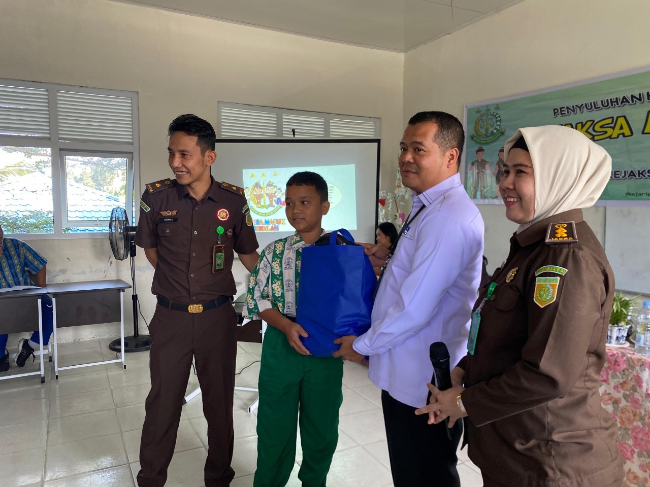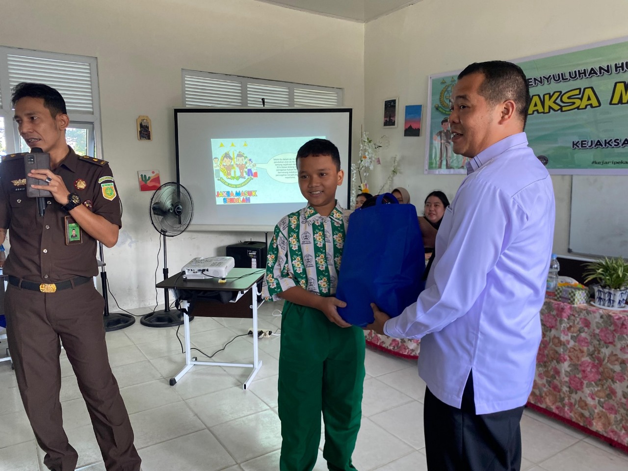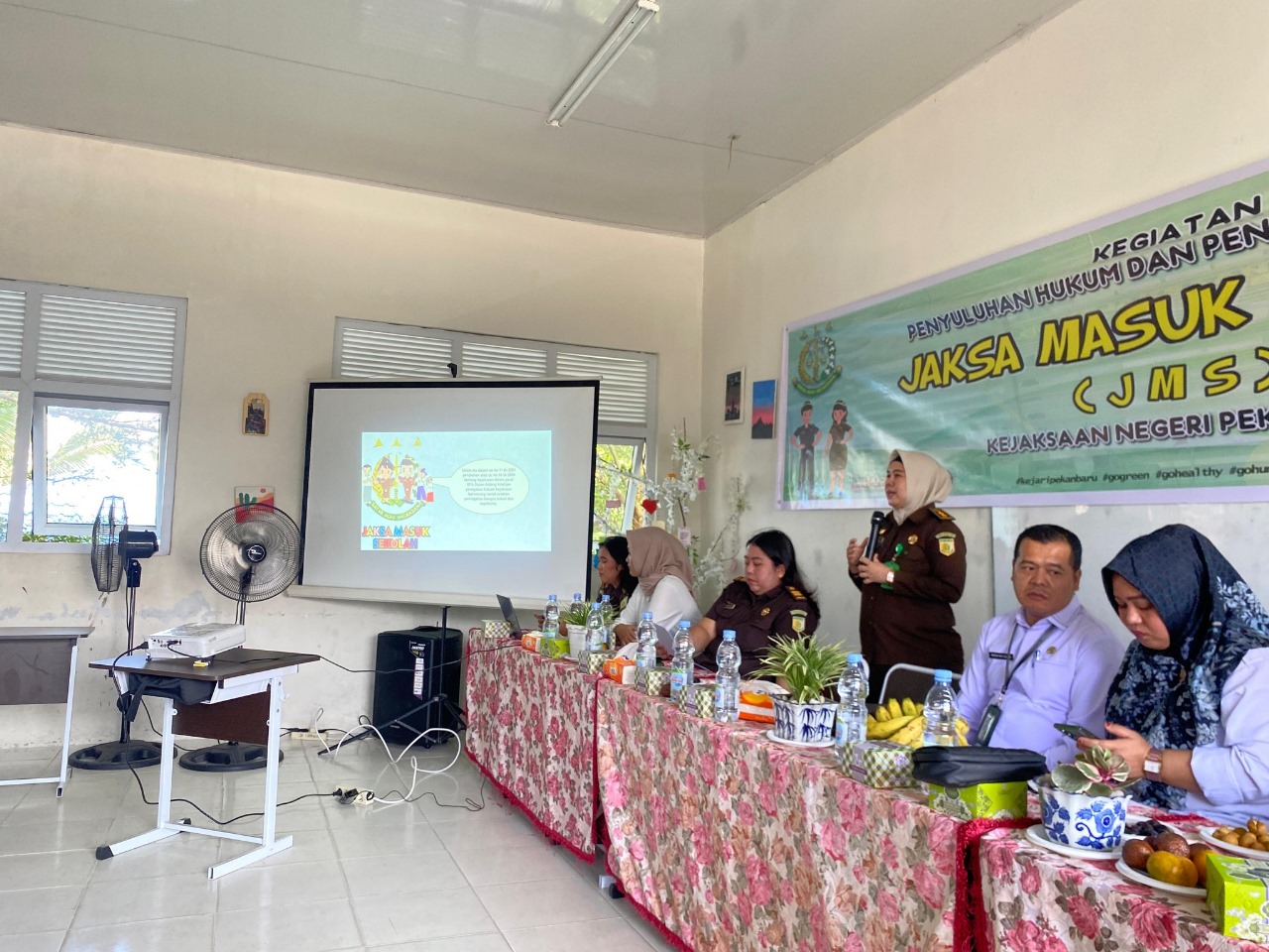 Kegiatan Penyuluhan Hukum program Kegiatan Jaksa Masuk Sekolah ini di hadiri oleh Edhie Junaidi Zarly, SH. Selaku Plt. Kasubsi A Intelejen Kejari Pekanbaru, Fuji Dwi Jona, SH., MH dan Heimi Christina Novalia selaku Jaksa Fungsional Intelejen Kejari Pekanbaru, juga Herry Oktawijaya dan Dwi Puji Oktadina, A.Md.T selaku Penyusun Bahan Informasi dan Publikasi Kejari Pekanbaru