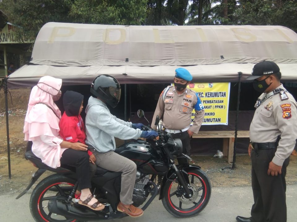 Pekanbarukini.com (PELALAWAN) – Polsek Kerumutan secara intensif melakukan upaya penekanan penyebaran covid-19 diwilayah hukumnya, Selasa (6/7/21).