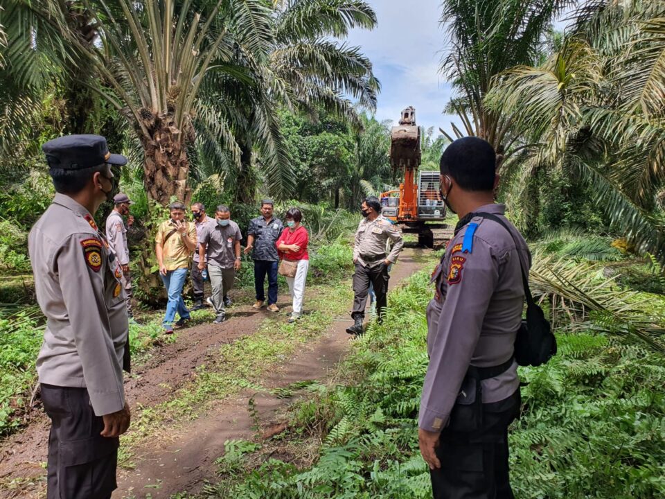 Pekanbarukini.com (PELALAWAN) – Kapolsek Bandar Sei Kijang Iptu Mulian Dony mengikuti kegiatan pembacaan eksekusi yang dilaksanakan oleh pengadilan negeri Kabupaten Pelalawan di Areal Kebun Avdeling 2 PT Cipta Daya Sejati Luhur (CDSL), Jumat (1/10/2021).