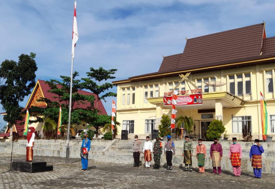 Pekanbarukini.com (PELALAWAN) – Kapolsek Bunut AKP Rokhani mengikuti upacara hari ulang tahun (HUT) Kabupaten Pelalawan Ke-22 di Lapangan Kantor Camat Bunut, Selasa (12/10/2021).
