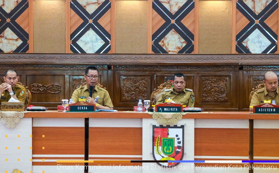 Pekanbarukini.com (PEKANBARU) – Penjabat (Pj) Walikota Pekanbaru Muflihun, S.STP., M.AP Memimpin Rapat dengan Seluruh Kepala OPD di Lingkungan Pemerintah Kota Pekanbaru. Bertempat di Ballroom Lt. 6 Gedung Utama Perkantoran Tenayan Raya, Rabu (3/1/2024).