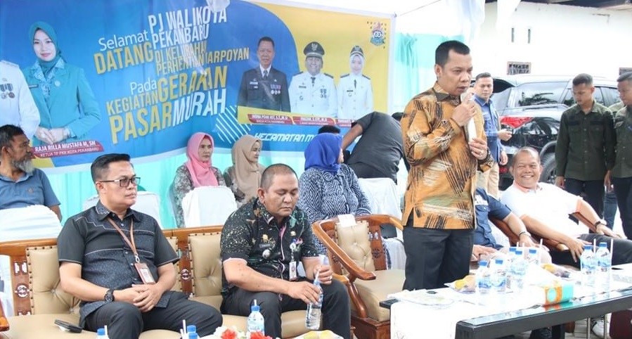 Pekanbarukini.com (PEKANBARU) – Kepala Dinas Ketahanan Pangan Kota Pekanbaru, H. Maisisco dampingi Pj Wali Kota Pekanbaru Muflihun, meninjau langsung Gerakan Pangan Murah, Kamis (11/1/2024). Ia datang langsung menyapa masyarakat di pasar murah yang berlangsung di Kantor Lurah Maharatu, Kecamatan Marpoyan Damai.