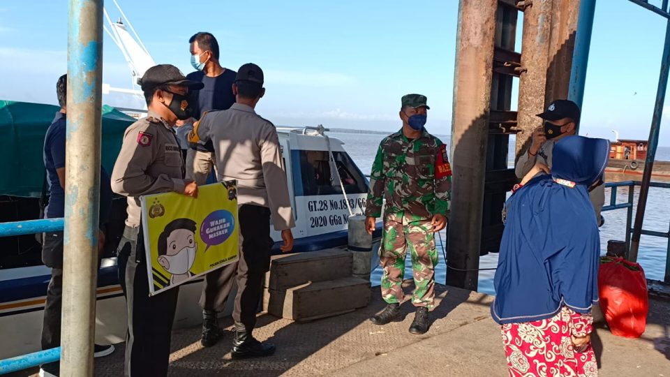 Pada kegiatan itu, petugas dipimpin oleh Bripka Mulya Sudirman didampingi TNI dan Syahbandar. Penertiban itu dilakukan terhadap masyarakat yang tidak menggunakan masker.