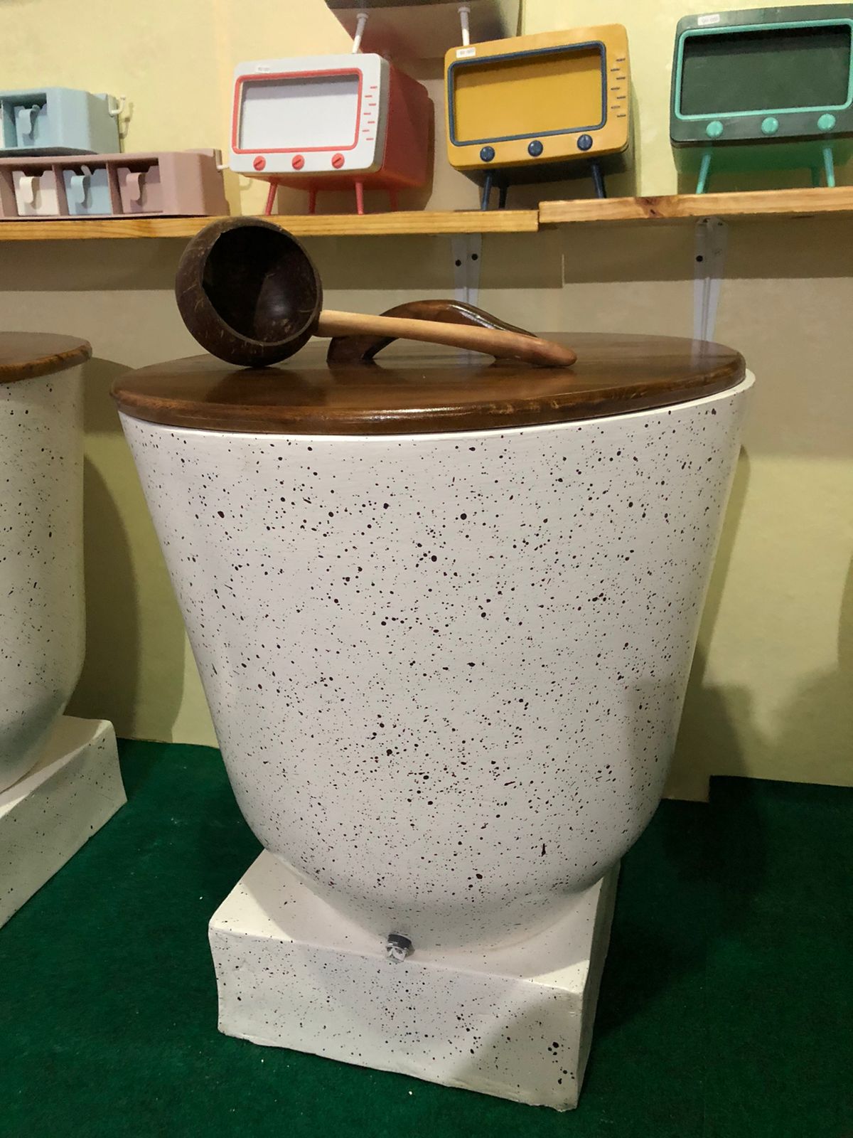 “Bak mandi ini cocok bagi Anda yang menginginkan kamar mandi minimalis dengan suasana cozy, suasana yang menyenangkan. Model gentong ini adalah model alternatif. Di mana desain bak mandi tidak melulu berbentuk kotak,” imbuhnya.