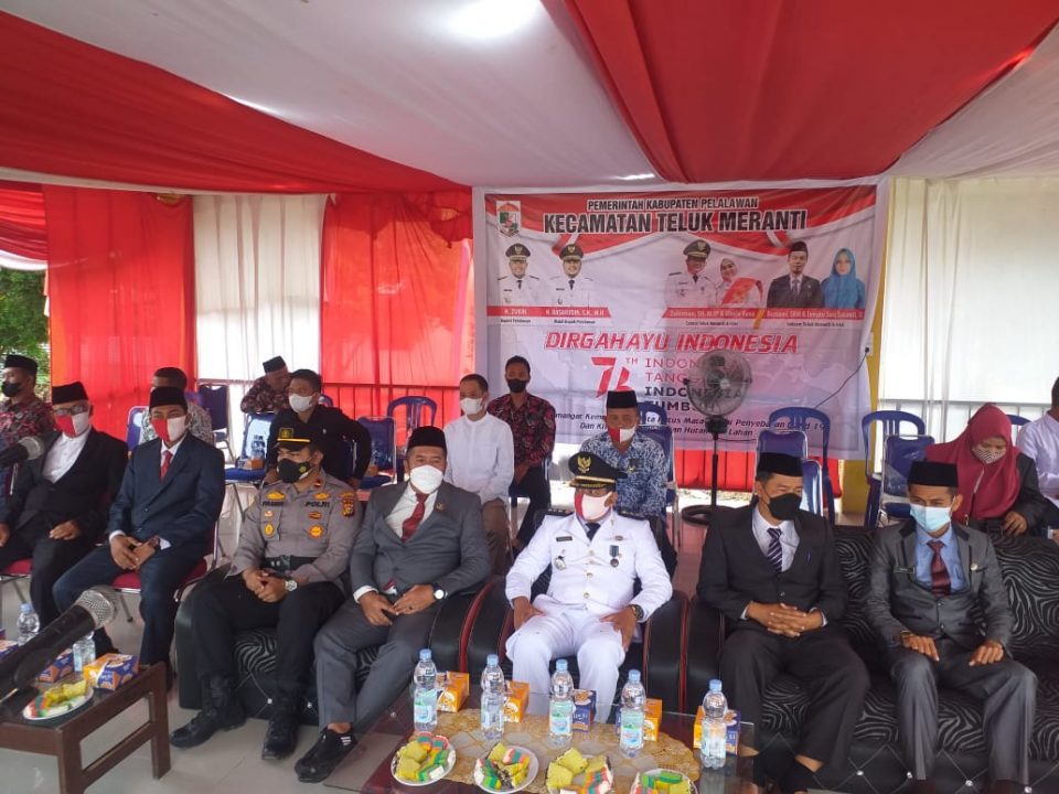 Pekanbarukini.com (PELALAWAN) – Dalam rangka peringatan Hut RI ke-76, Polsek Teluk Meranti, jajaran Polres Pelalawan mengikuti upacara pengibaran bendera merah putih di lapangan Kantor Camat Teluk Meranti.
