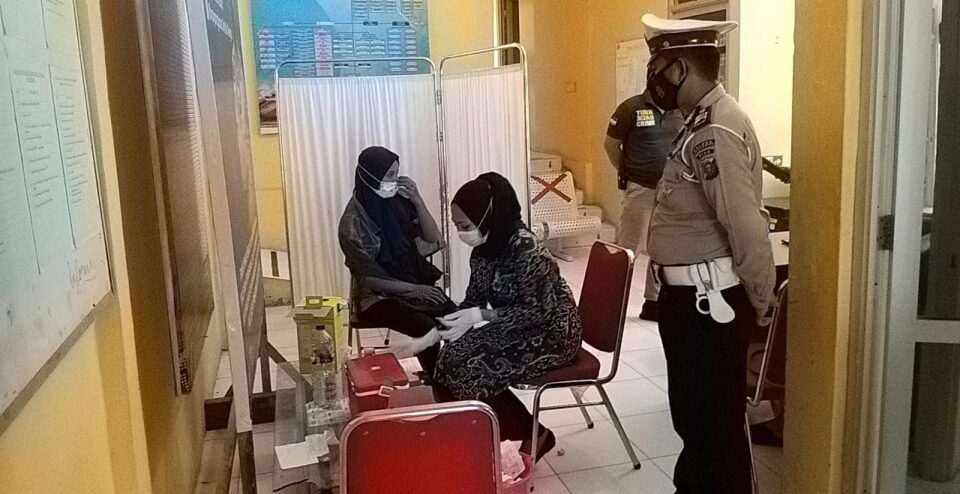 Pekanbarukini.com (PELALAWAN) – Polsek Pangkalan Kuras, jajaran Polres Pelalawan mendampingi tenaga kesehatan (Nakes) dalam pelaksanaan vaksinasi Covid-19 terhadap masyarakat di wilayah hukum setempat.