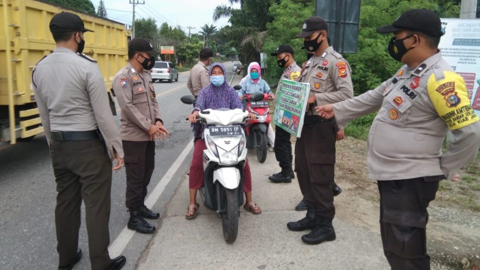 Kegiatan tersebut dilakukan melalui operasi yustisi di Pos Pantau Covid-19 di Jalan Lintas Timur Km 34, Kelurahan Sei Kijang, Kecamatan Bandar Sei Kijang.
