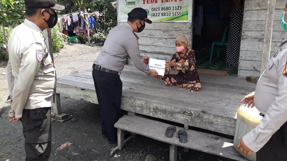 Polsek Kuala Kampar Gelar Baksos Pembagian Sembako Kepada Lansia Terdampak Covid-19
