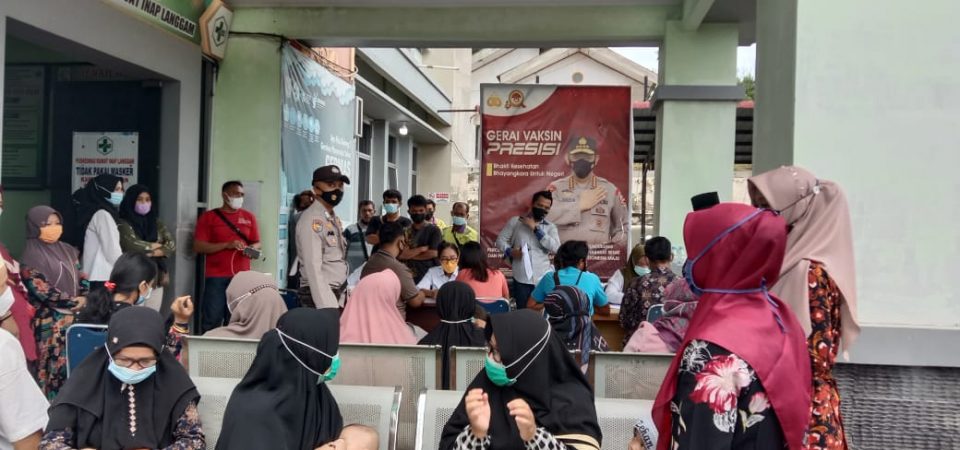 Pekanbarukini.com (PELALAWAN) – Polsek Langgam, jajaran Polres Pelalawan mengawal kegiatan vaksinasi massal tahap III di gerai vaksin Langgam, Rabu (01/9/2021).
