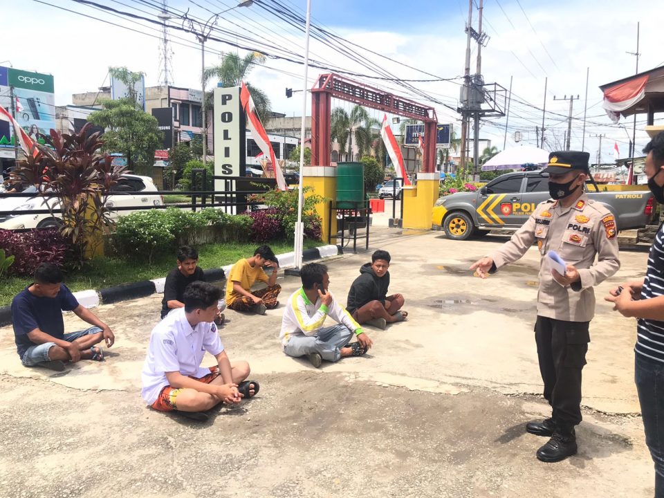 “Dalam giat kali ini kami menjaring tujuh pelanggar prokes dan diberikan teguran tertulis berupa surat pernyataan, serta tetap membagikan masker kepada warga masyarakat,” tambahnya.