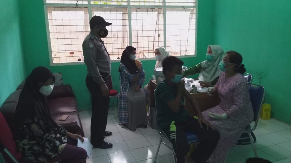 Pekanbarukini.com (PELALAWAN) – Upaya proses percepatan pemberian vaksinasi kepada seluruh masyarakat di wilayah hukum, Polsek Pangkalan Kuras intens melakukan pengawalan rutin, Sabtu (8/1/2022).