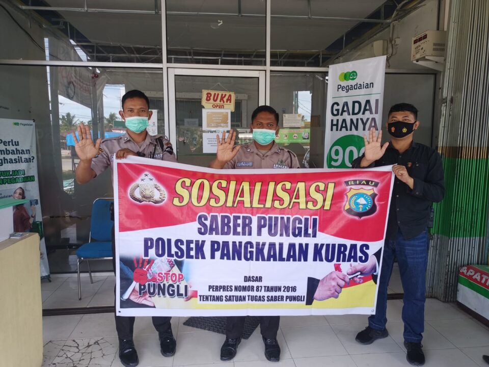 Sosialisasi dilaksanakan oleh personel Polsek Pangkalan Kuras dipimpin Panit II Sabhara Aiptu Mawardi Basril di Kantor Pegadaian Pangkalan Kuras, Kecamatan Pangkalan Kuras, Kabupaten Pelalawan.
