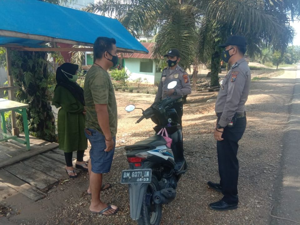 “Pada kesempatan tersebut petugas memberikan himbauan prokes sekaligus membagikan masker kepada warganya, mengingat tingginya penularan Covid-19 di Kabupaten Pelalawan,” ucap Iptu Liston Sihombing.