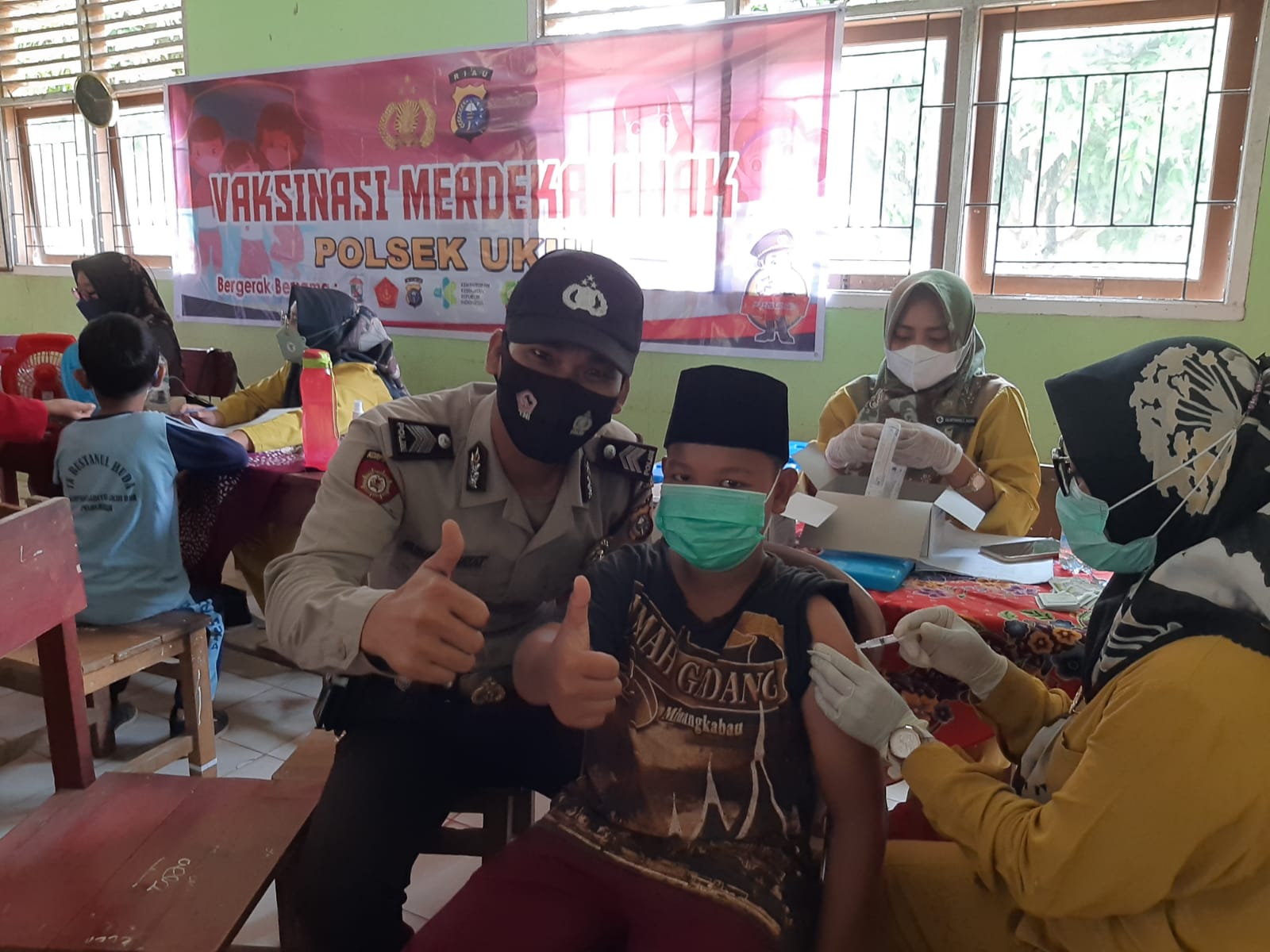 Kapolsek Teluk Meranti yang diwakili oleh Bhabinkamtibmas Desa PI Muda dan Segamai Bripka Yulizar mengingatkan vaksinasi ini kepada orang tua siswa, agar tidak ragu membawa anaknya mengikuti vaksinasi.