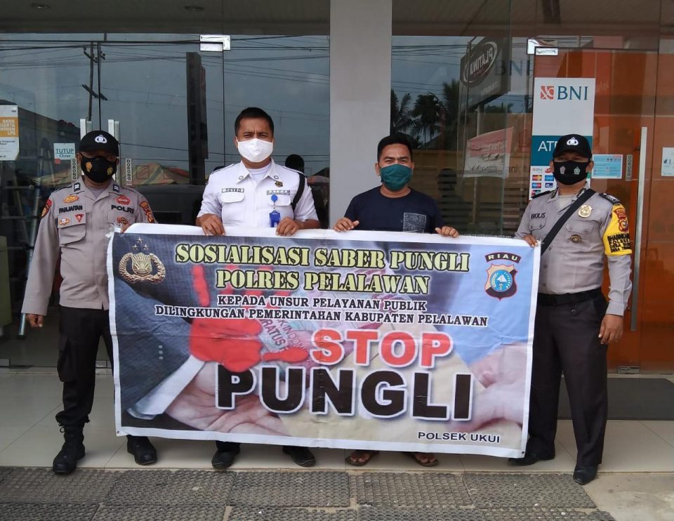Pekanbarukini.com (PELALAWAN) – Polsek Ukui terus mensosialisasikan Sapu Bersih Pungutan Liar (Saber Pungli) dengan mengajak masyarakat bekerja sama, Minggu (22/8/2021).