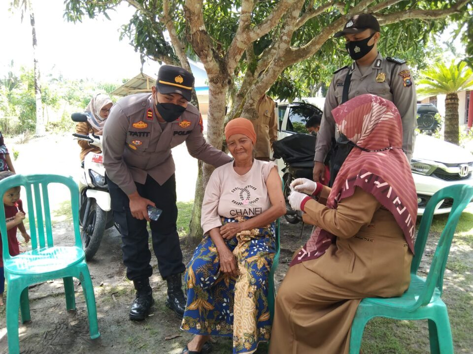 Polsek Ukui, Nakes dan Aparatur Desa Laksanakan Vaksinasi untuk Lansia secara Door to Door