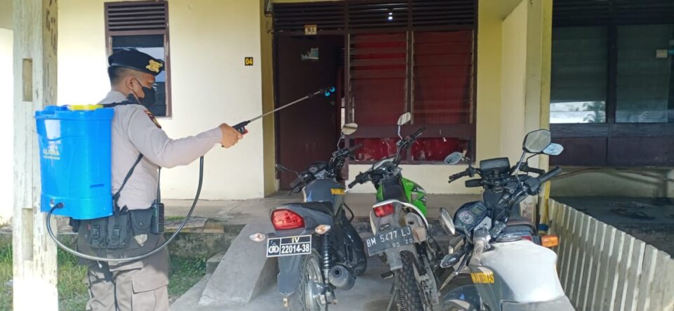 Kegiatan tersebut dilaksanakan oleh Ka Jaga Regu III Polsek Pangkalan Kuras Bripka Sigit menyemprotkan seluruh ruangan kerja, halaman depan, hingga asrama Polsek Pangkalan Kuras, Kecamatan Pangkalan Kuras, Kabupaten Pelalawan.