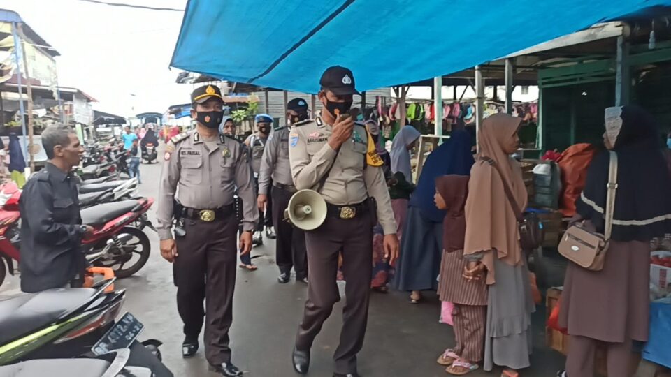 Pekanbarukini.com (PELALAWAN) – Polsek Kuala Kampar menyambangi pasar Minggu di wilayah hukum setempat guna mengajak masyarakat menerapkan protokol kesehatan (Prokes) Covid-19 dan mengikuti vaksinasi, Minggu (12/12/2021).