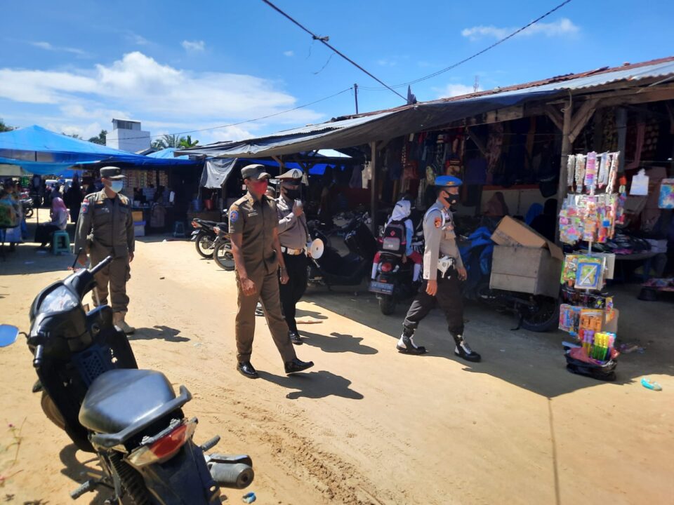 Seperti pada Jumat (8/10/2021), sejumlah personel Polsek Pangkalan Kuras, dipimpin Wapawas Ps Kanit Provost Bripka Togap Sitorus melaksanakan yustisi di pasar Mingguan Desa Sialang Indah.