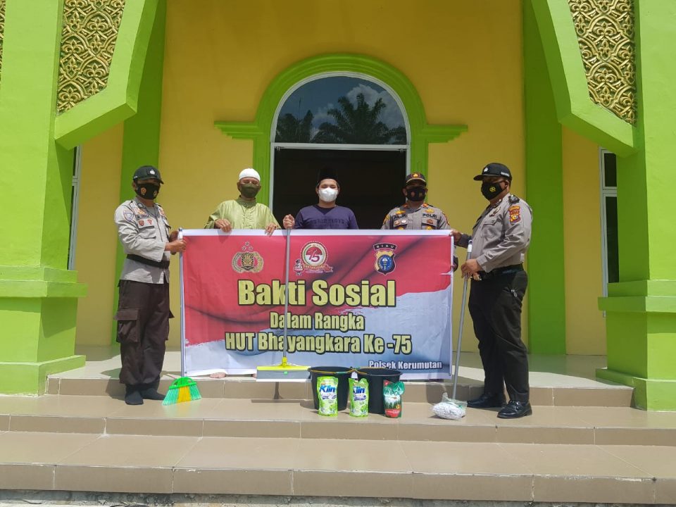 ‘‘Setiap hari ulang tahun Bhayangkara selalu melaksanakan bakti sosial baik itu membersihkan rumah ibadah maupun kegiatan-kegiatan lain untuk kemanusiaan,” kata Kapolsek kerumutan Iptu Fajri Sentosa, Rabu (23/6/21).