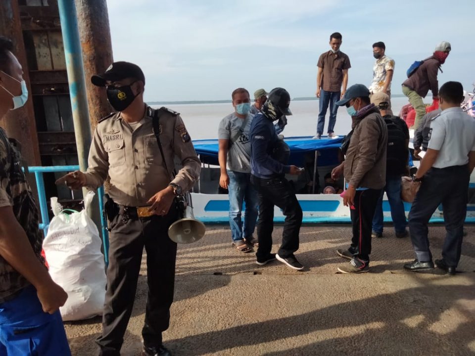 Pekanbarukini.com (PELALAWAN) – Polsek Kuala Kampar bersama instansi terkait terus menyiagakan soal penertiban protokol kesehatan (prokes) Covid-19 di Pos Pemberlakuan Pembatasan Kegiatan Masyarakat (PPKM) di Pelabuhan Penyalai Teluk Dalam, Kabupaten Pelalawan, Rabu (26/5/21).
