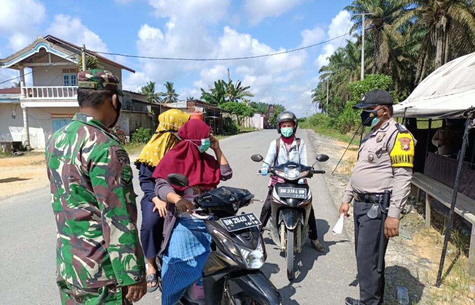 Dalam kesempatan tersebut sinergitas Polsek Kerumutan bersama Babinsa membagikan masker gratis serta menyampaikan imbauan kepada masyarakat agar selalu mematuhi protokol kesehatan.