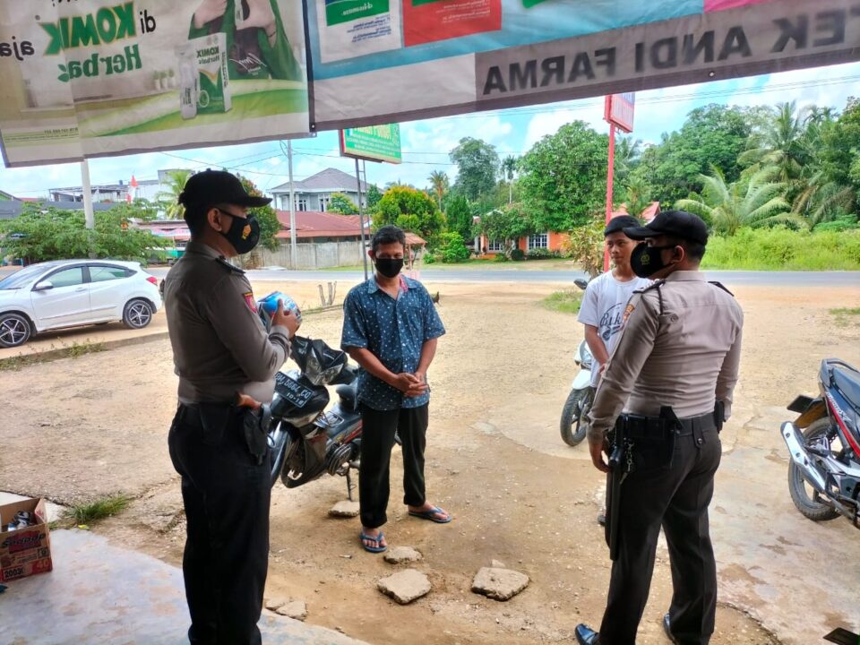 Pekanbarukini.com (PELALAWAN) – Tingkat penularan Covid-19 di Kecamatan Lesung, Pelalawan, Riau, sudah mengalami penurunan. Namun Polsek Pangkalan Lesung tak kenal lelah dan terus melakukan imbauan protokol kesehatan (Prokes) Covid-19 kepada masyarakat.