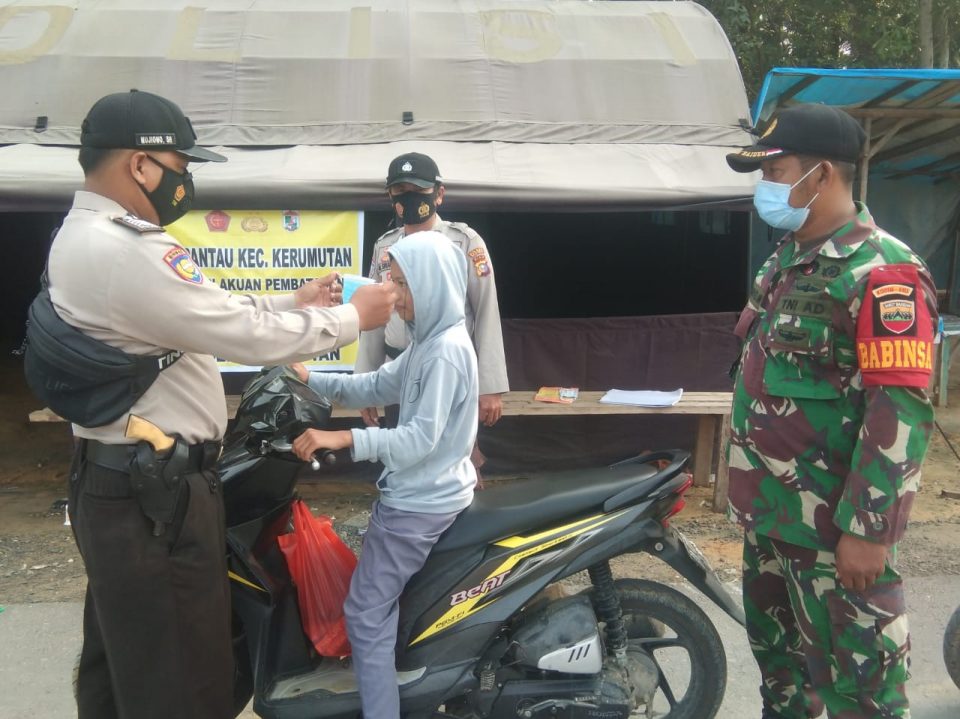 Kegiatan diawali dengan sosialisasi, edukasi serta pembagian masker di Pos Pantau Pemberlakuan Pembatasan Kegiatan Masyarakat Mikro (PPKM) yang berlokasi dipintu masuk Kelurahan Kerumutan. kemudian, dilanjutkan dengan melakukan sejumlah penindakan yakni berupa teguran lisan maupun pemberian sanksi sosial bagi yang kedapatan tidak patuh prokes seperti tidak memakai masker.