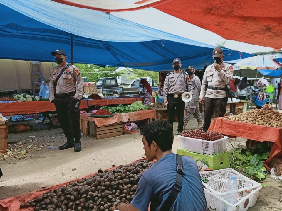 Giat tersebut dimaksudkan untuk mendisiplinkan Prokes pedagang, pengunjung dan masyarakat yang terlihat sedang berkerumun.