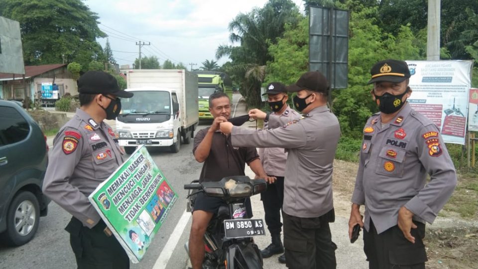 “Bersamaan dengan kegiatan yustisi, personil yang bertugas di pos pantau juga melakukan sosialisasi protokol kesehatan (prokes) dan pembagian masker kepada masyarakat Kecamatan Bandar Sei Kijang,” ucap AKP Yusup.
